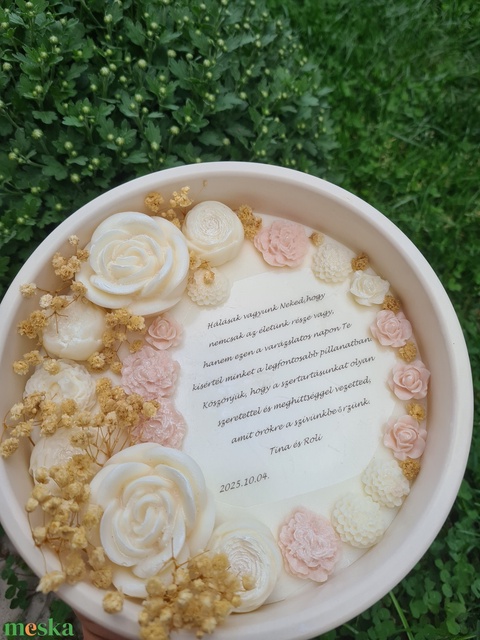 - Anyaga: szójaviasz, transzferpapír, porcelán