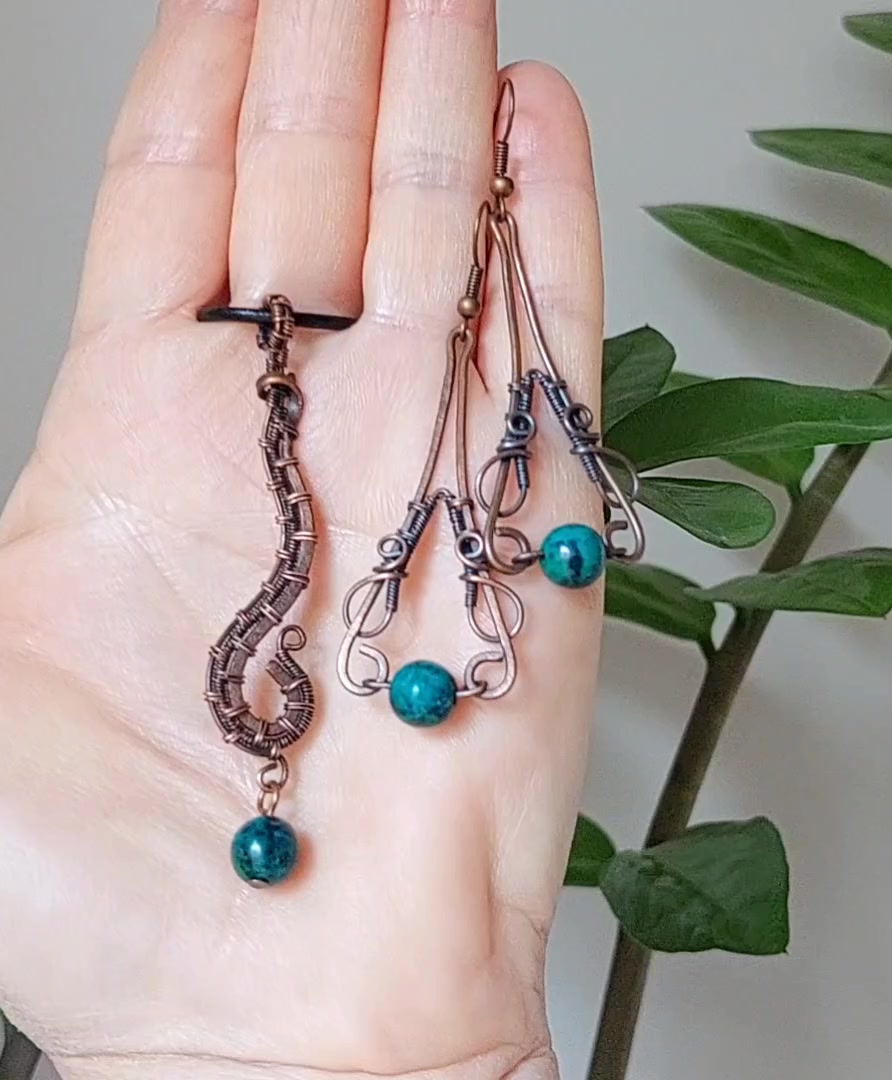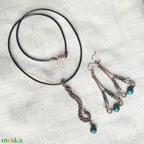 - Anyaga: vörösréz drót, krizokolla ásvány