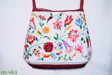 Színes, kézzel hímzett virágos hímzett textíliából készült, nagy méretű egyedi női pakolós cipzáros válltáska