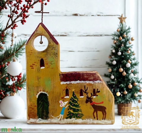 Templom kisegérrel - Egyedi dekoráció, ajándék ötlet, Gyerekszoba, Karácsony, Kisegér, Szarvas, Karácsonyfa