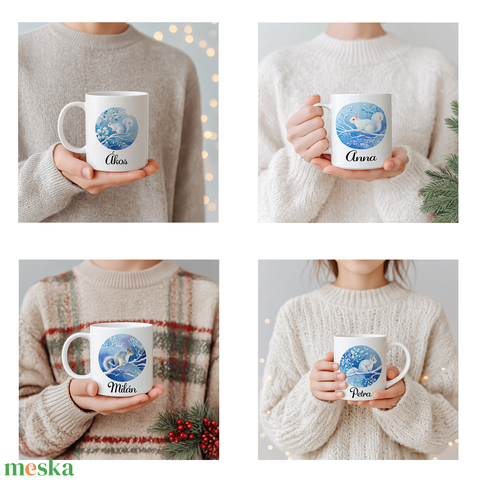 Névre szóló „Mókus a havas faágon” bögre – 4 minta közül választható