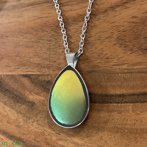 Eozinos mentett Zsolnay darabok - porcelán nyaklánc, nemesacél csepp medálos