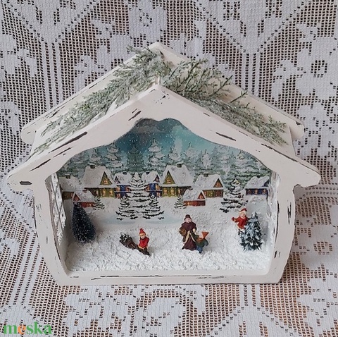 - Anyaga: fa, műhó, szalvéta, műfenyő, paszta, krétafesték