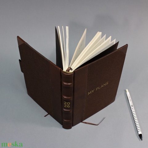 2026 heti tervező / határidőnapló - barna valódi bőr és vászon - matt arany felirattal