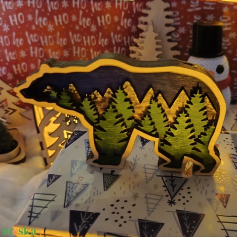 Többrétegű fa medve dekor – 5 rétegű lézervágott dísz