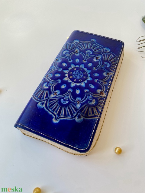 Női bőr pénztárca mandala vésettel