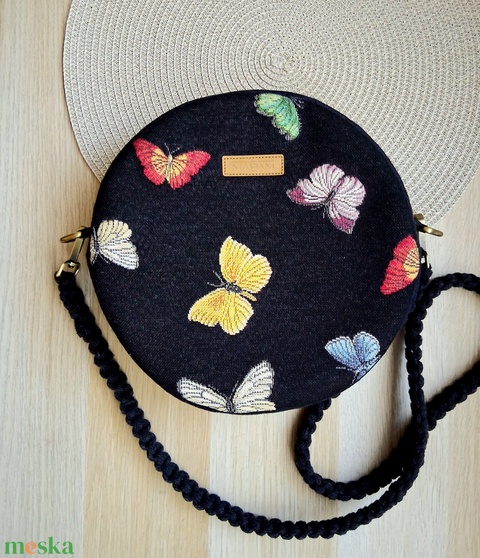 "Pillangók"körtáska, válltáska, valódi gobelin szövetből, makramé vagy műbőr vállpánttal