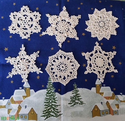 Karácsonyfadísz/hópehely/ajándékkísérő, rusztikus, nagy, ekrü színű