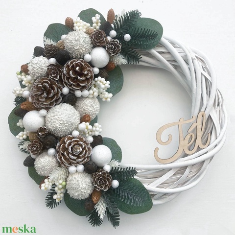 - Anyaga: koszorú alap, gömbök, műfenyő