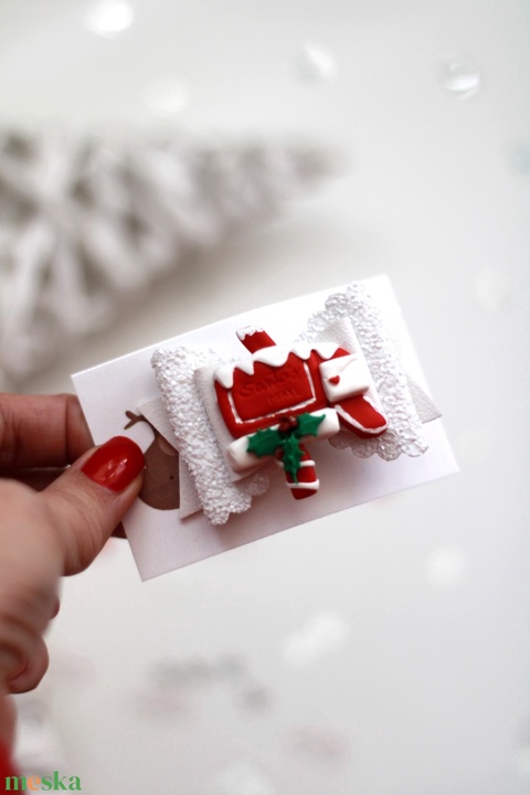 Karácsonyi postaláda hajcsat, gyerek hajcsat, hajcsat