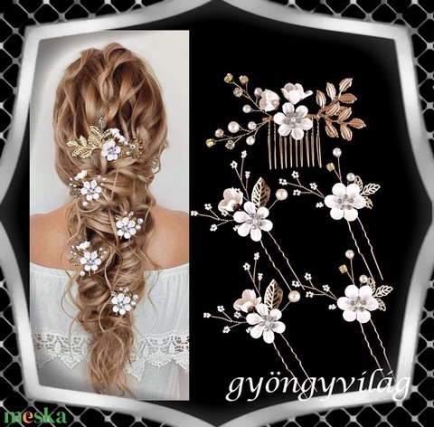Ékszerek-hajdíszek, hajcsatok: Esküvői, menyasszonyi, alkalmi hajdísz, ES-H-SZ22a 5db-os szet fehért