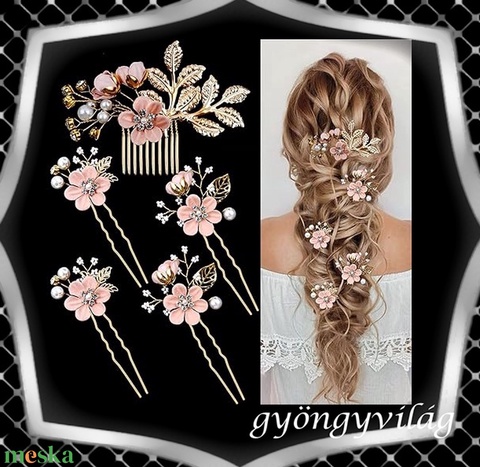 Ékszerek-hajdíszek, hajcsatok: Esküvői, menyasszonyi, alkalmi hajdísz, ES-H-SZ22a 5db-os szet mályva