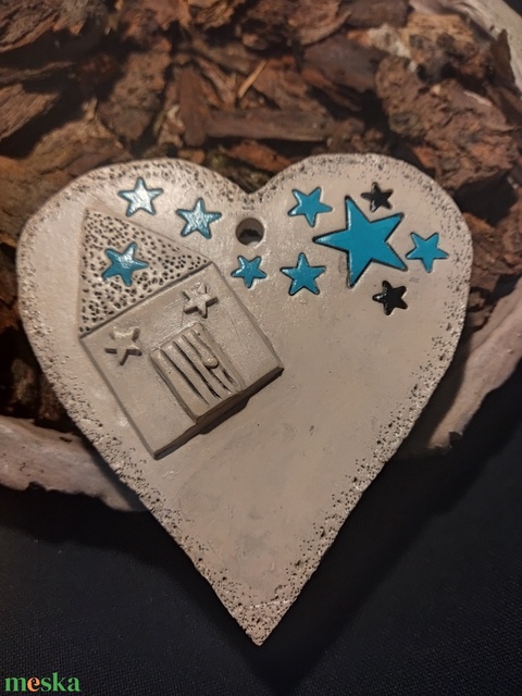 Karácsonyfa dísz kerámiából türkiz