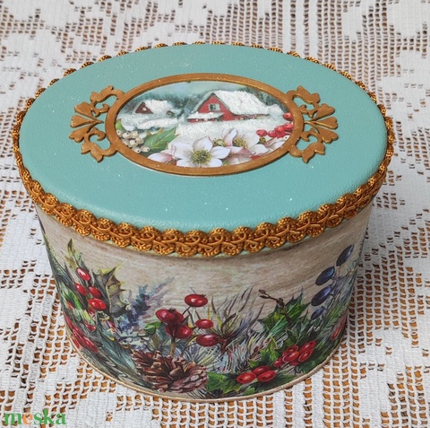 Ovális karácsonyi fémdoboz, kincsesdoboz