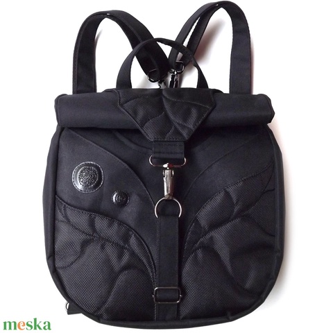 - Anyaga: gyöngyvászon, heveder, cipzár, cérna, fém karabíner, műbőr, flíz, vízlepergető vászon, cordura
