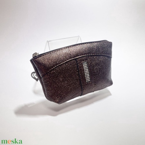 Sötétbarna egy cipzáras egyenes swarovski köves kulcstartó E9001