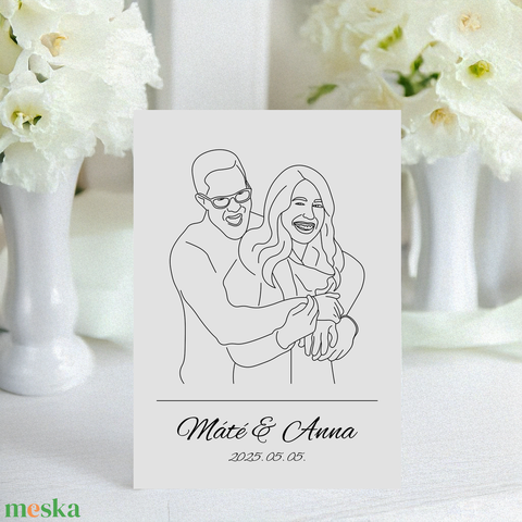 3. Küldd el a ráírandó neveteket és dátumot (ha egyedi színt választottál, akkor írd le azt is, milyen színt szeretnél). Emellett küldj egy jó minőségű közös fotót az ifjú párról, ami alapján szeretnéd, hogy a vonalrajz elkészüljön.