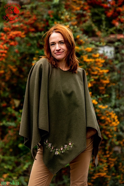 Szervető-jászsági tulipán kámzsa nélüli poncsó - zöld