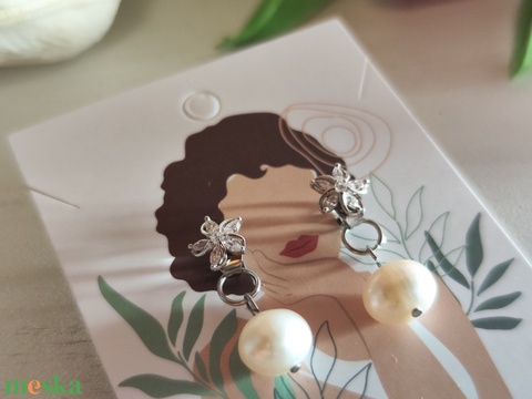 Egyedi S925 ezüst virágos fülbevaló 9 mm édesvízi gyönggyel!