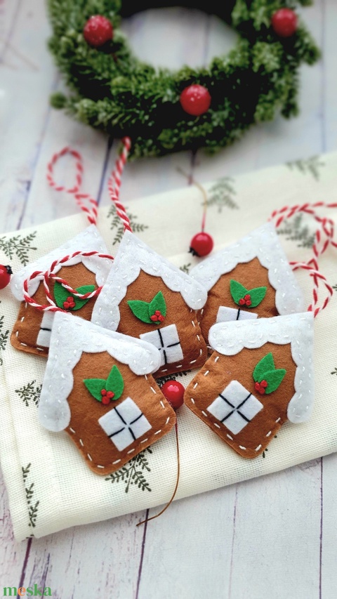 Bababarát karácsonyi filc házikók, mèzeskalács