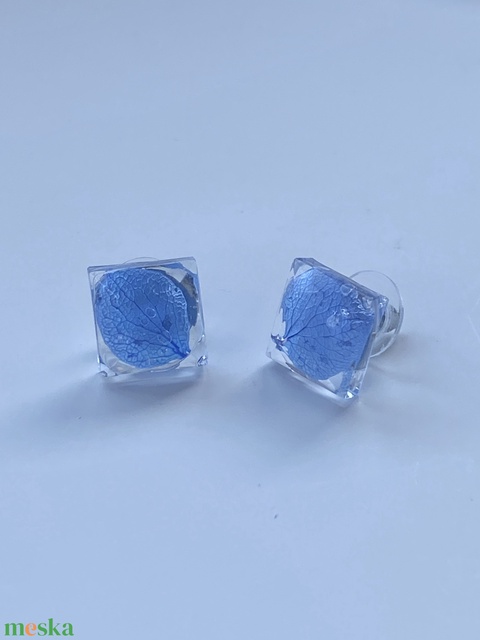Kék mini hortenzia ,epoxi gyanta beszúrós fülbevaló