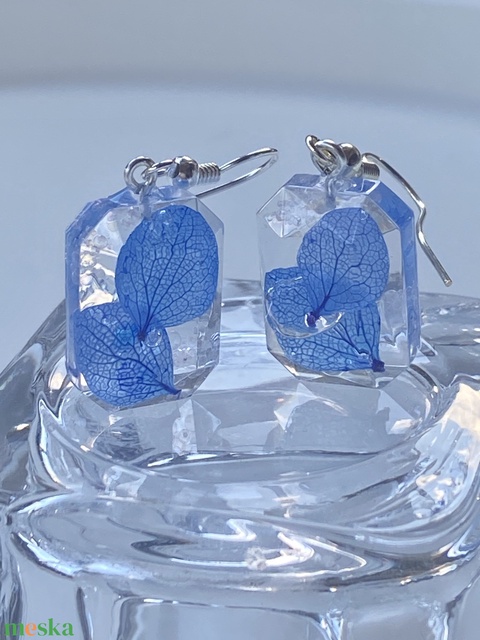 Kék mini hortenzia ,epoxi gyanta fülbevaló