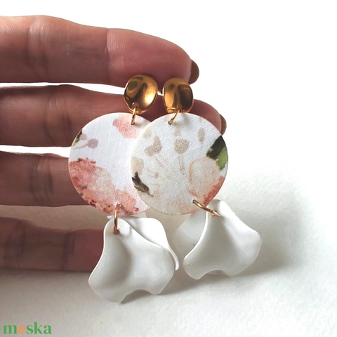 Halvány virágos, fehér textilfülbevaló szirmokkal