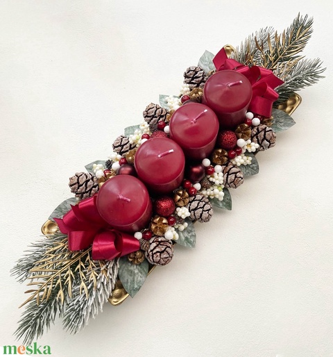 tál, gömbök, toboz, termések, zuzmó, gyertya, műfenyő