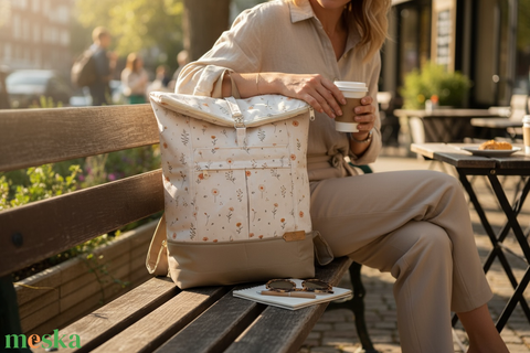 Szerelemtáskád - Blaur krém virág mintás rolltop hátizsák