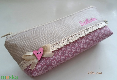 Virágos, névre szóló cipzáros tolltartó