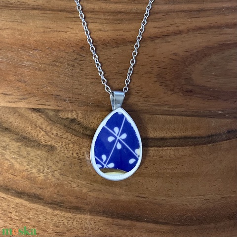 Zsolnay mentett darabok - porcelán nyaklánc - nemesacél csepp medálos nyaklánc