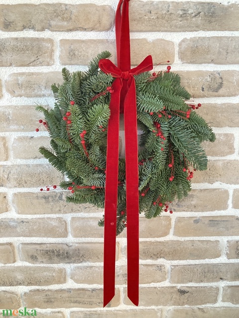 Élő fenyős kopogtató piros színben, Klasszikus Karácsony
