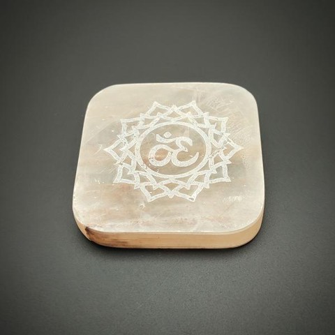 Szelenit üveg négyzet OM mandala mintával 6–7 cm