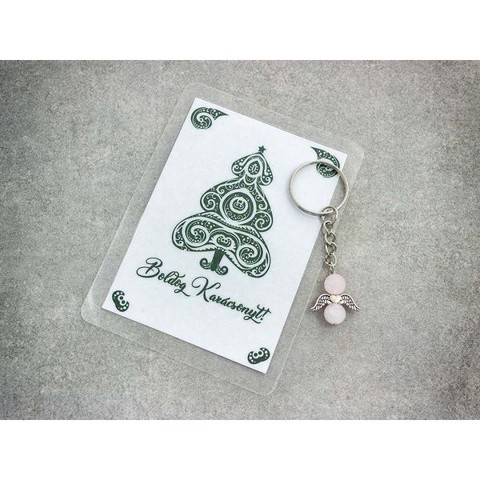Karácsony angyali érintése rózsakvarc kulcstartó üdvözlőkártyával