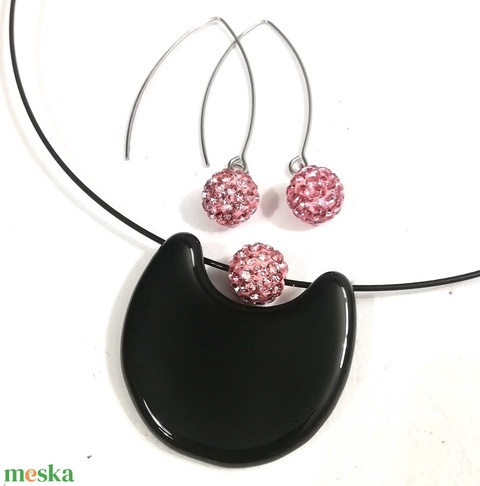 NEMESACÉL! Mályva-fekete trendi ékszerszett, ajándék karácsonyra, névnapra, születésnapra.