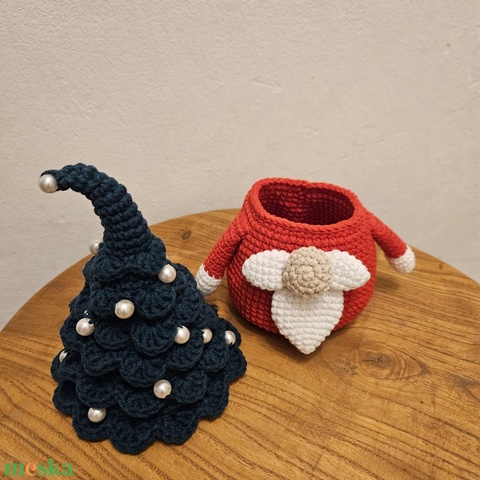 Bonbon tartó karácsonyi manó - horgolt figura