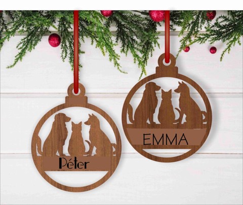 Karácsonyfadísz nevesített kutyával és macskával – gravírozott fa dísz Tedd még különlegesebbé az ünnepet ezzel a gravírozott fa karácsonyfadísszel, amely kutya- és macskamotívummal van díszítve, egyedi névvel vagy rövid felirattal testre szabható. A natúr fa melegséget áraszt, miközben a lézergravírozás tartósságot biztosít, így ez a dísz egyszerre dekoráció és személyes emlék. Részletek: Mérete 10 cm Fából készült gravírozott névvel Személyre szabott karácsonyfadísz kutya és macska motívummal A személyre szabott karácsonyfadísz kutya és macska mintával tökéletes választás azok számára, akik szeretnék kedvencüket is bevonni az ünnepi dekorációba. A dísz minőségi fából készül, amely természetes melegséget sugároz, és harmonikusan illik a karácsonyfa hagyományos vagy modern díszeihez. A lézergravírozott név vagy felirat időtálló, így ez az egyedi ajándék minden évben újra előkerülhet a karácsonyi készülődés során. A gravírozott minta részletgazdag és tartós, a kutya–macska motívum pedig kiemeli a dísz különlegességét. A natúr fa felület festhető, pácolható, így akár saját stílusodhoz is igazíthatod. A dísz mérete ideális, jól látható helyet kap a fa ágai között, de alkalmas ablak- vagy polcdíszként is. Egyedi gravírozás, ami szívhez szól A dísz személyre szabható névvel, így tökéletes meglepetés állatbarátoknak, családtagoknak vagy pároknak, akik szeretnék megörökíteni kedvencük nevét. A gravír nem kopik, nem fakul, és maradandó, érzelmes értéket ad a tárgynak. A személyes feliratnak köszönhetően a dísz ajándéknak is kiváló — karácsonyra, adventre, háziállat emlékére vagy akár kedves meglepetésként. Természetes anyag, időtálló szépség A fa díszek egyik legnagyobb előnye, hogy hosszú évek múltán is szépek maradnak. A natúr anyag környezetbarát, könnyű és tartós, így biztonsággal használható minden évben. A lézervágott vonalak precízek, a kontúrok tiszták, a minta pedig minden fényben szépen kirajzolódik. Tökéletes ünnepi ajándék minden állatbarátnak Ez a személyre szabott karácsonyfadísz nem csupán dekoráció, hanem kedves emlék, amely meghittséget visz az ünnepi időszakba. Ajándéknak is ideális — legyen szó családról, barátokról vagy állatbarát ismerősökről. Egyedi, névre szóló kivitelezésének köszönhetően minden karácsonyfán különleges helyet kap.