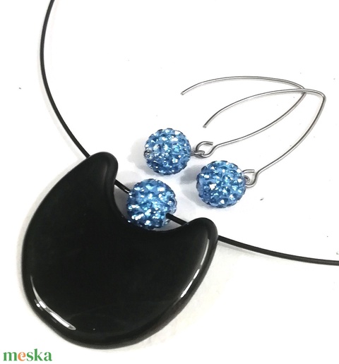 NEMESACÉL! Levendula-fekete trendi ékszerszett, ajándék karácsonyra, névnapra, születésnapra.