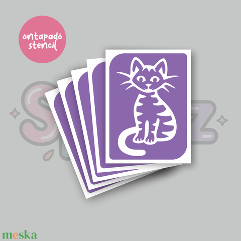 Cica mintás 07 öntapadó csillámtetoválás sablon / csillámtetkó stencil