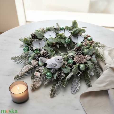 Kismadaras téli asztaldísz – prémium, részletgazdag KENDEKOR dekoráció