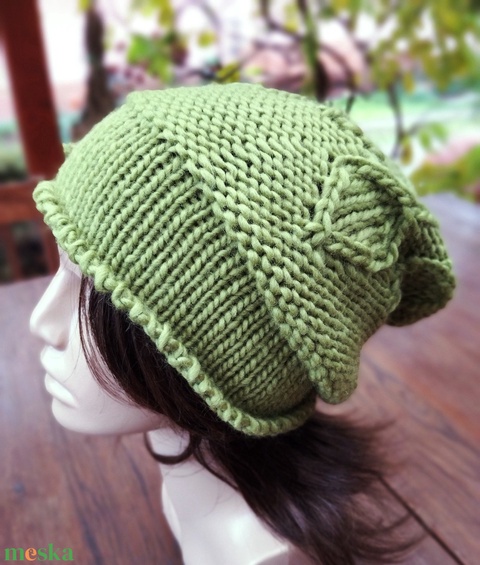 Pisztácia leveles vastag öko gyapjú női sapka kötött laza slouchy