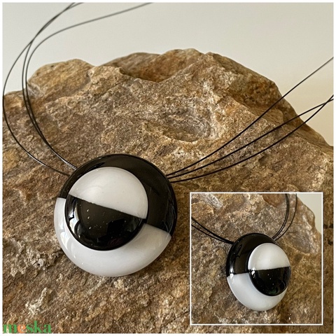 Klasszikus fekete-fehér nyaklánc, üvegékszer