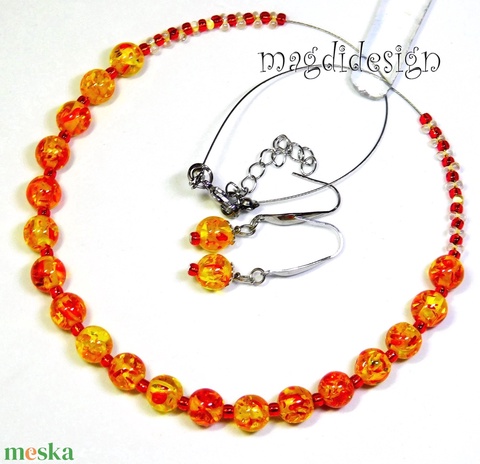 Tüzes napsúgár gyöngyékszer szett nyaklánc fülbevaló