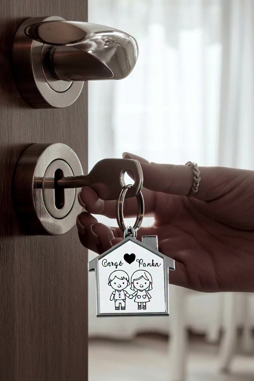 Minőségi kulcstartó rajzos mintákkal, egyedi névvel díszdobozban