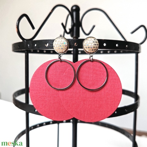 Egyszínű sötét rózsaszín nagyméretű textilfülbevaló ezüsttel