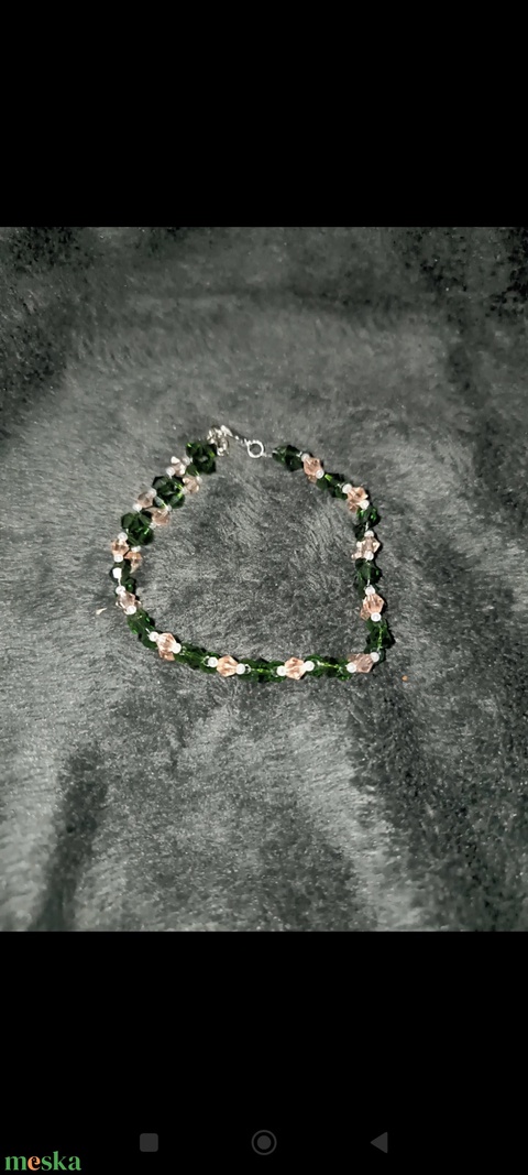 - Anyaga: műanyag gyöngy, damil, fém kapocs és lánc
