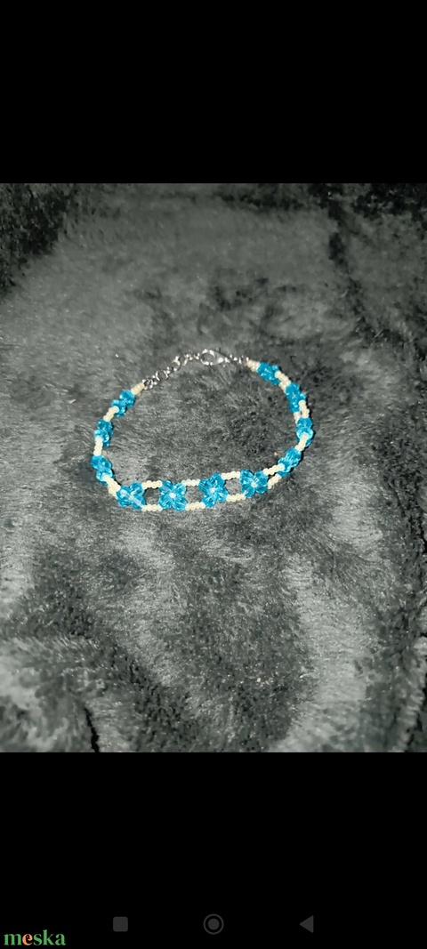 - Anyaga: műanyag gyöngy, damil, fém kapocs és lánc