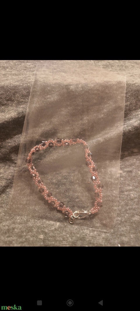 - Anyaga: műanyag gyöngy, damil, fém kapocs és lánc