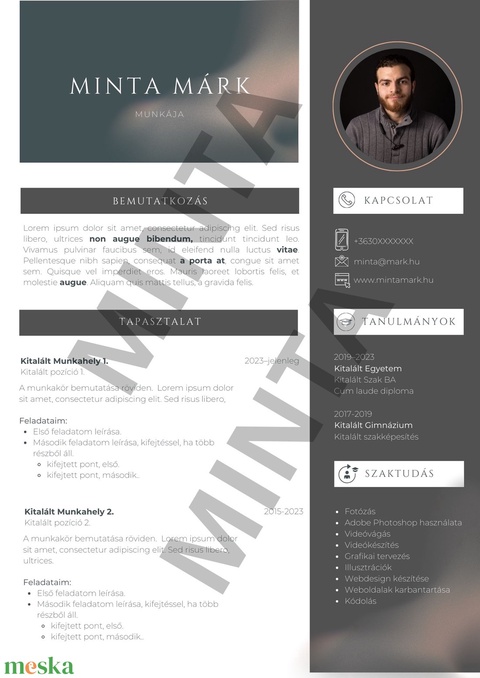 Professzionális önéletrajz, személyre szabva, A4-es méretben.