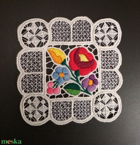 Riseliő csipke kalocsai virágokkal, négyzetes